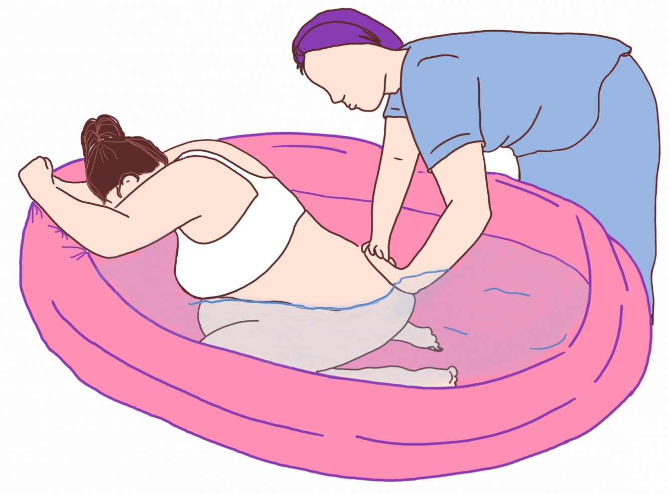 - Phase de l'expulsion : le bébé descend et la maman pousse selon les besoins.