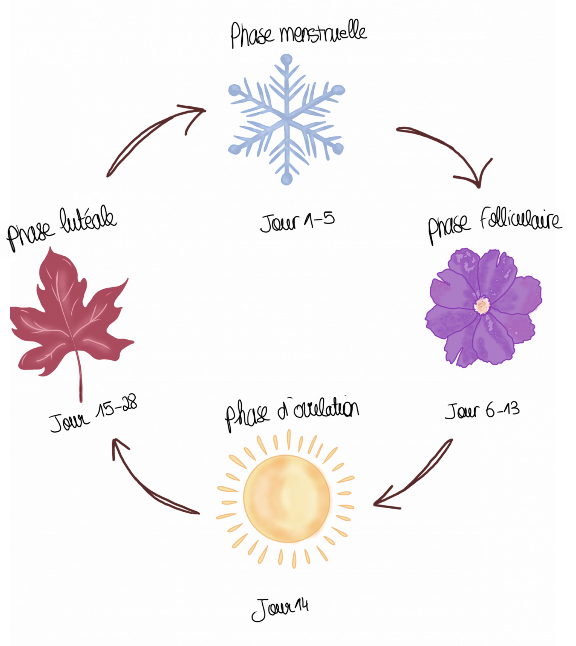 Le cycle féminin est un processus biologique qui régule la fertilité et prépare le corps à une éventuelle grossesse. Il dure en moyenne 28 jours, mais peut varier entre 21 et 35 jours selon les femmes. Il est contrôlé par des hormones (oestrogènes et progestérone) et se divise en quatre phases principales :La phase menstruelle (jours 1-5) : les règles